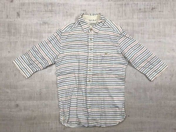 - ナノユニバース nano・universe セレショ系 00s アメカジ 古着 カラフル ボーダー 七分袖シャツ メンズ コットン100% M 白