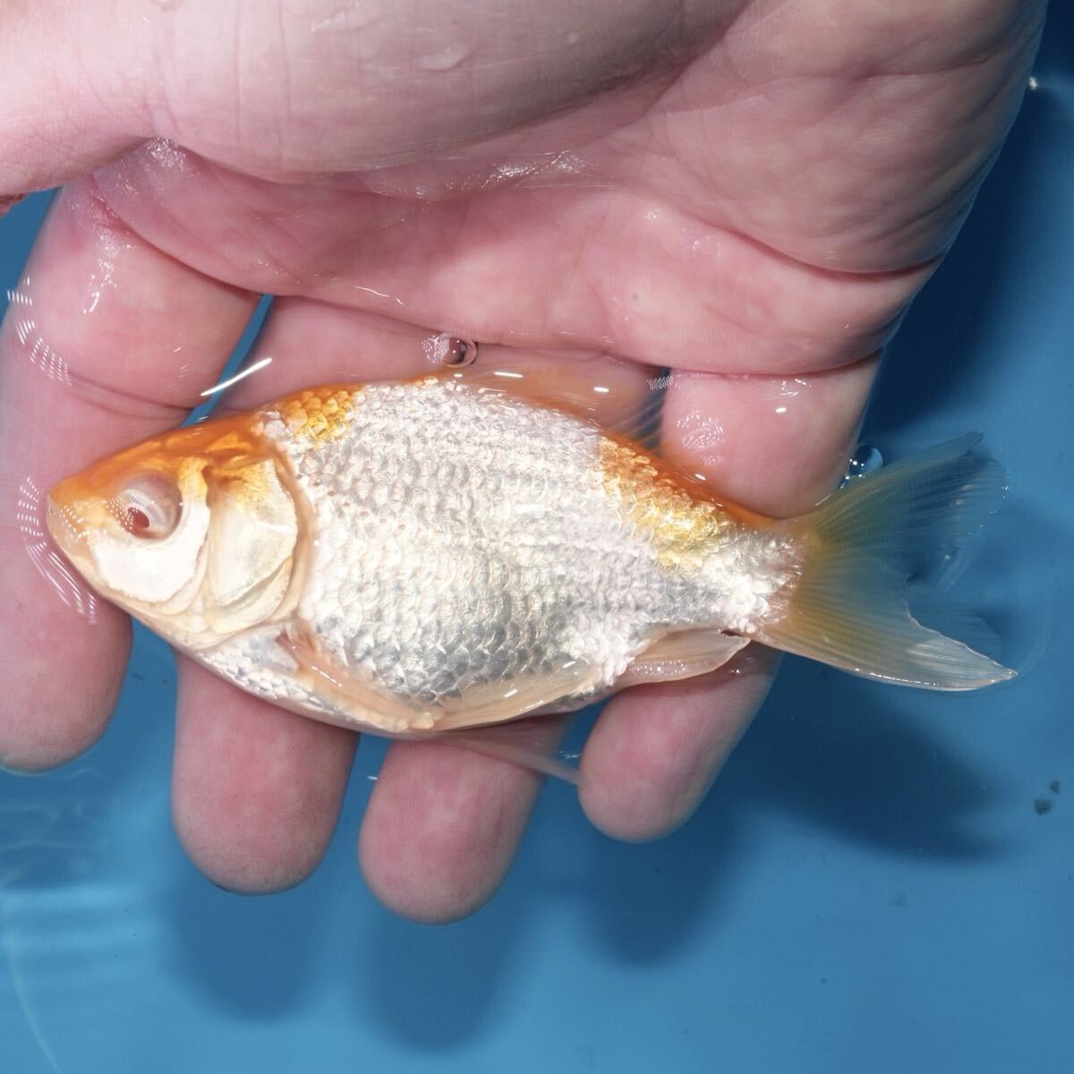 - 最高グレード アルビノ更紗キラキラ三尾和金 吉野養魚場産 1匹 きんぎょ 金魚