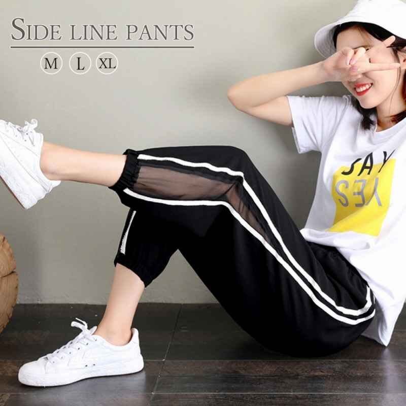 - サイドライン パンツ レディース ジャージパンツ ウエストゴム ヨガパンツ M ブラック