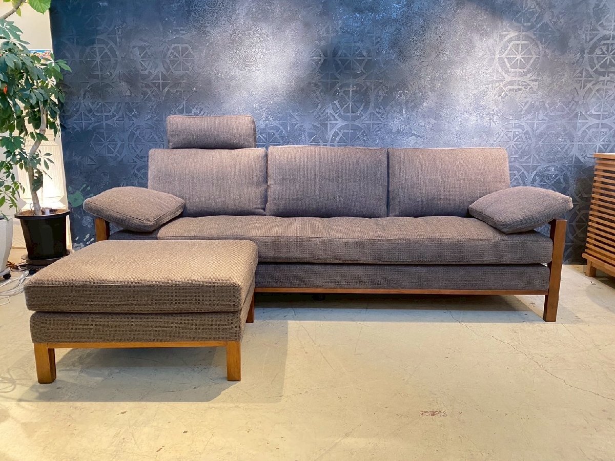 > 注)送料購入後追加 美品 karimoku カリモク家具 高級 WT56 オットマン付き 長椅子 モダン 3人掛けソファ 中古品 直接引き取り大歓迎