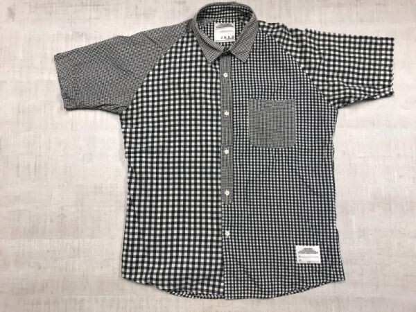 > J.N.R.D ジュン JUN RED レトロ アメカジ トラッド ギンガムチェック クレイジーパターン 半袖シャツ メンズ コットン100% 1 白/黒