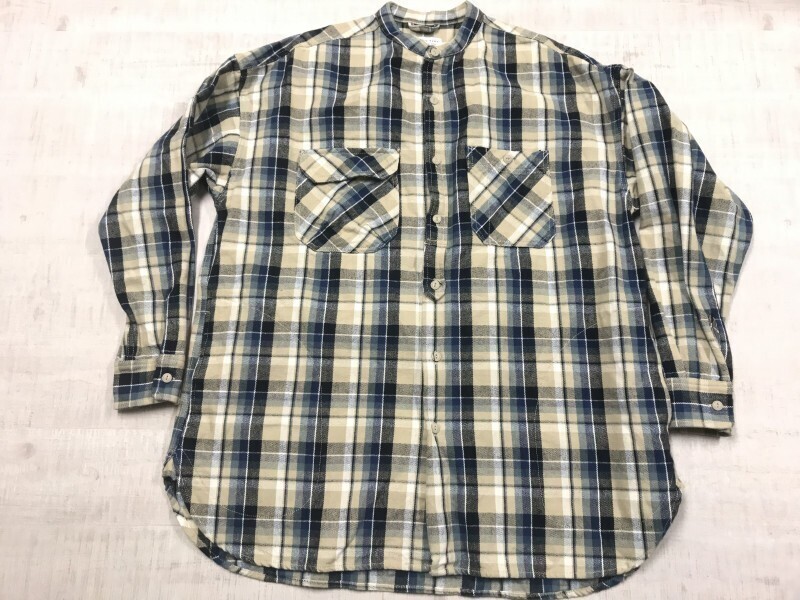 > チャオパニック Ciaopanic TYPY アメカジ ストリート チェック ワイド オーバーサイズ ノーカラー長袖コットンネルシャツ メンズ L