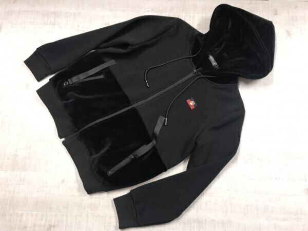 > QIANQIUXUE 千秋雪 中華ブランド 共産ストリート スポーツ ベロア×ジャージー 異素材 ジップアップ パーカー メンズ XL 黒