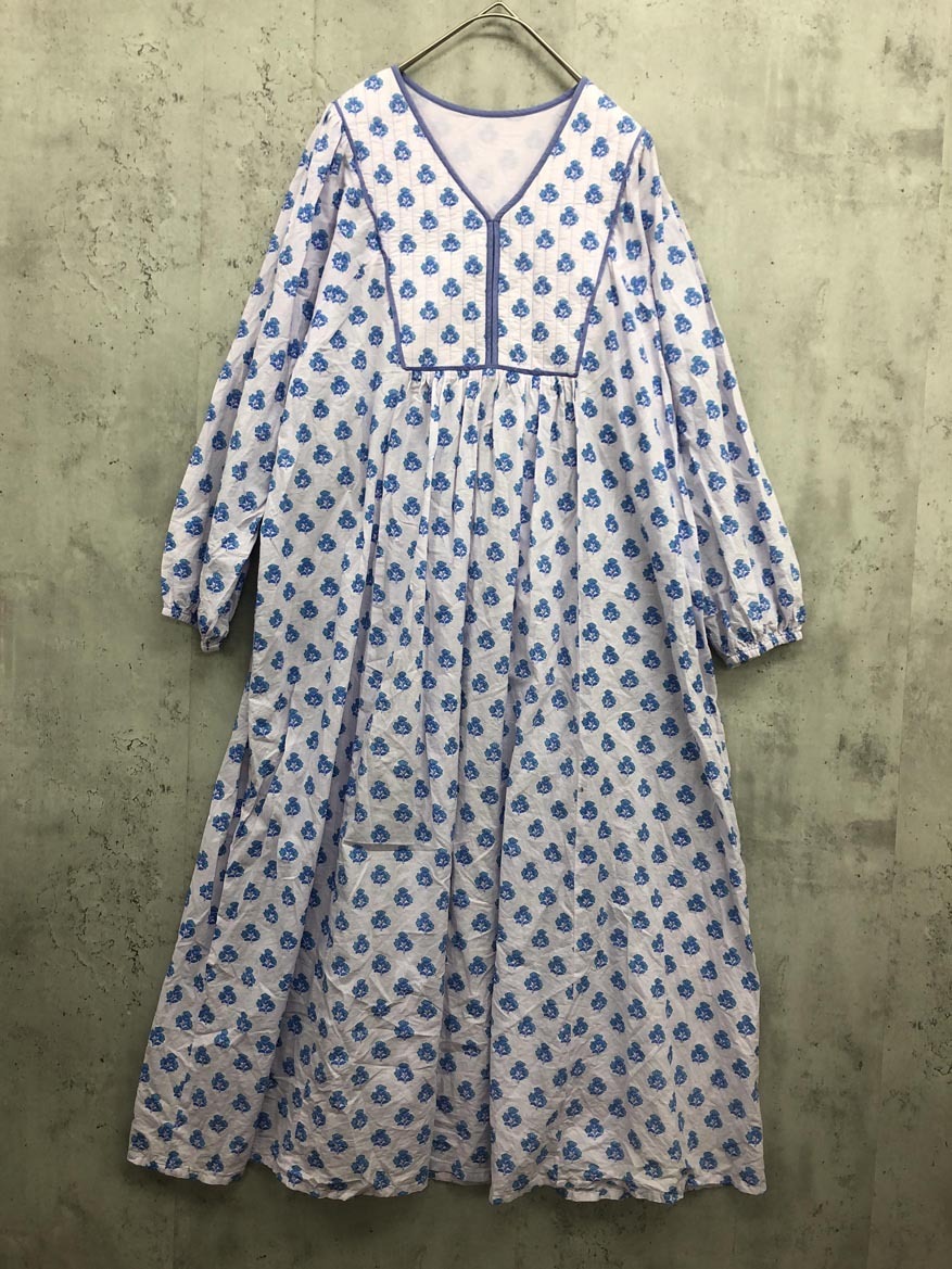 > ゆうパケットOK Afternoon Tea アフタヌーンティー ワードローブ 花柄 インドプリントキルト ワンピース sizeF/ブルー ■■