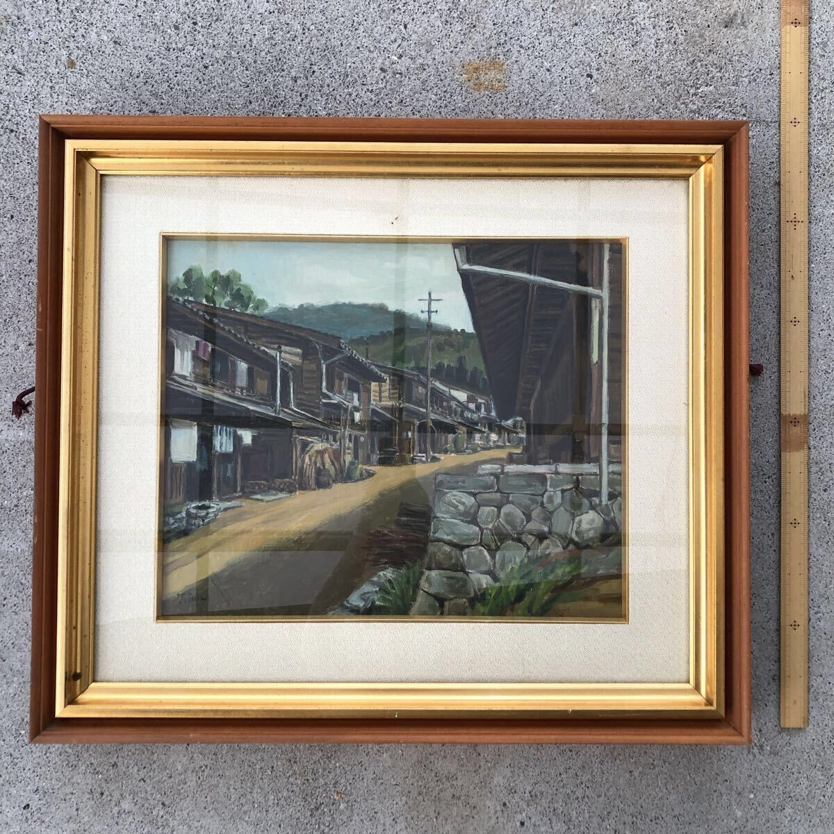 - 【小田利美原画 油彩 信州路】昭和レトロ 真作 風景画 額装 直筆サイン入り 田舎町 絵画 アート 美術品 日本 Toshimi Oda 美術家 油絵