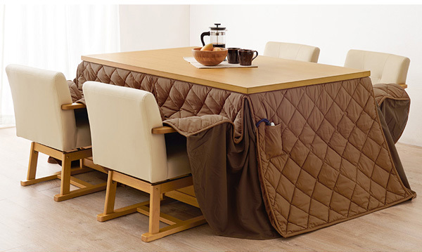 > ハイタイプ高脚こたつセット ダイニングコタツ+椅子4脚+無地掛け布団 こたつ(KOT-7311NA-150) 150×90センチ 長方形 ナチュラル色