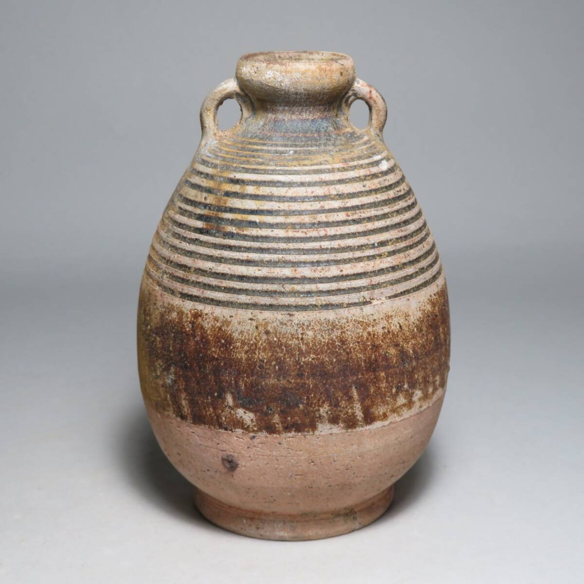 - 「都内コレクター所蔵品」タイ スコータイ時代 カロン窯 双耳瓶 壷 宋胡録 タイ スワンカローク窯 東南アジア古陶器lot:103013