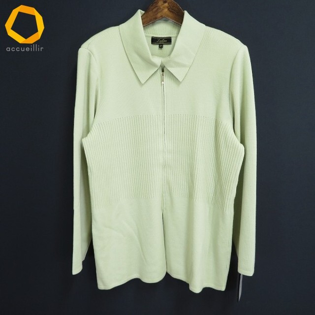 > #w レリアン Leilian ニット セーター 13+ 黄緑 カーディガン フルジップ 13号 大きいサイズ 日本製 タグ付き レディース [957360] k01
