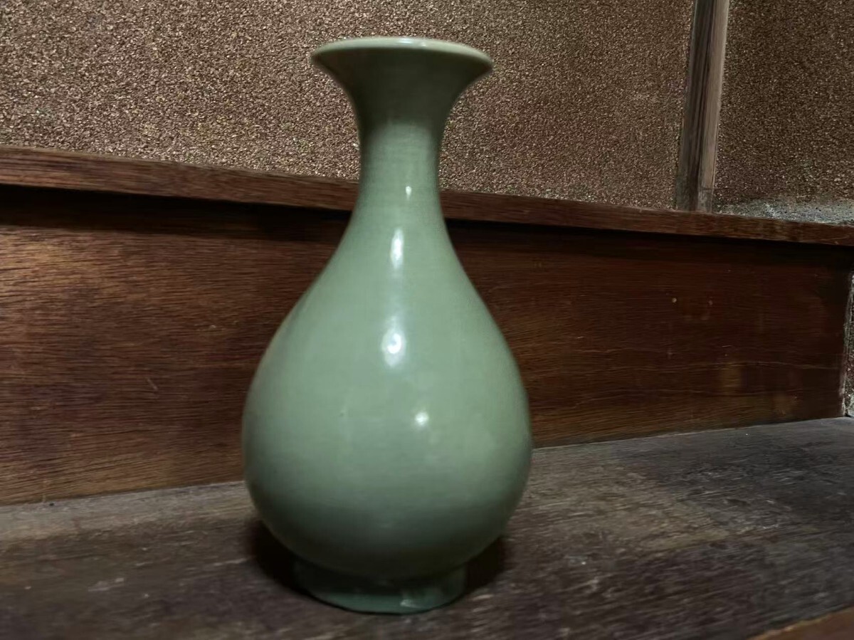 > コレクター放出品 中国古美術 玉壺春 青磁 花瓶 龍泉窯 天龍寺 唐物 骨董品 陶磁器 青磁 花入 時代品