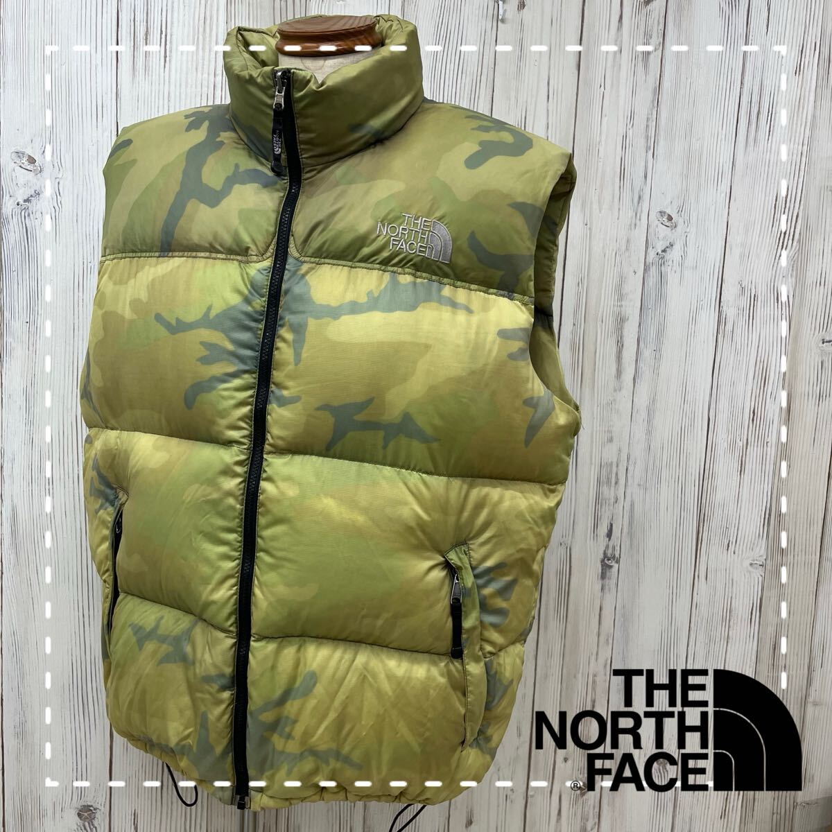 > M■ THE NORTH FACE ノースフェイス 700フィル NUPTSE ヌプシ メンズ ダウンベスト ND01587 カモフラ 迷彩ベスト XXLサイズ センターロゴ