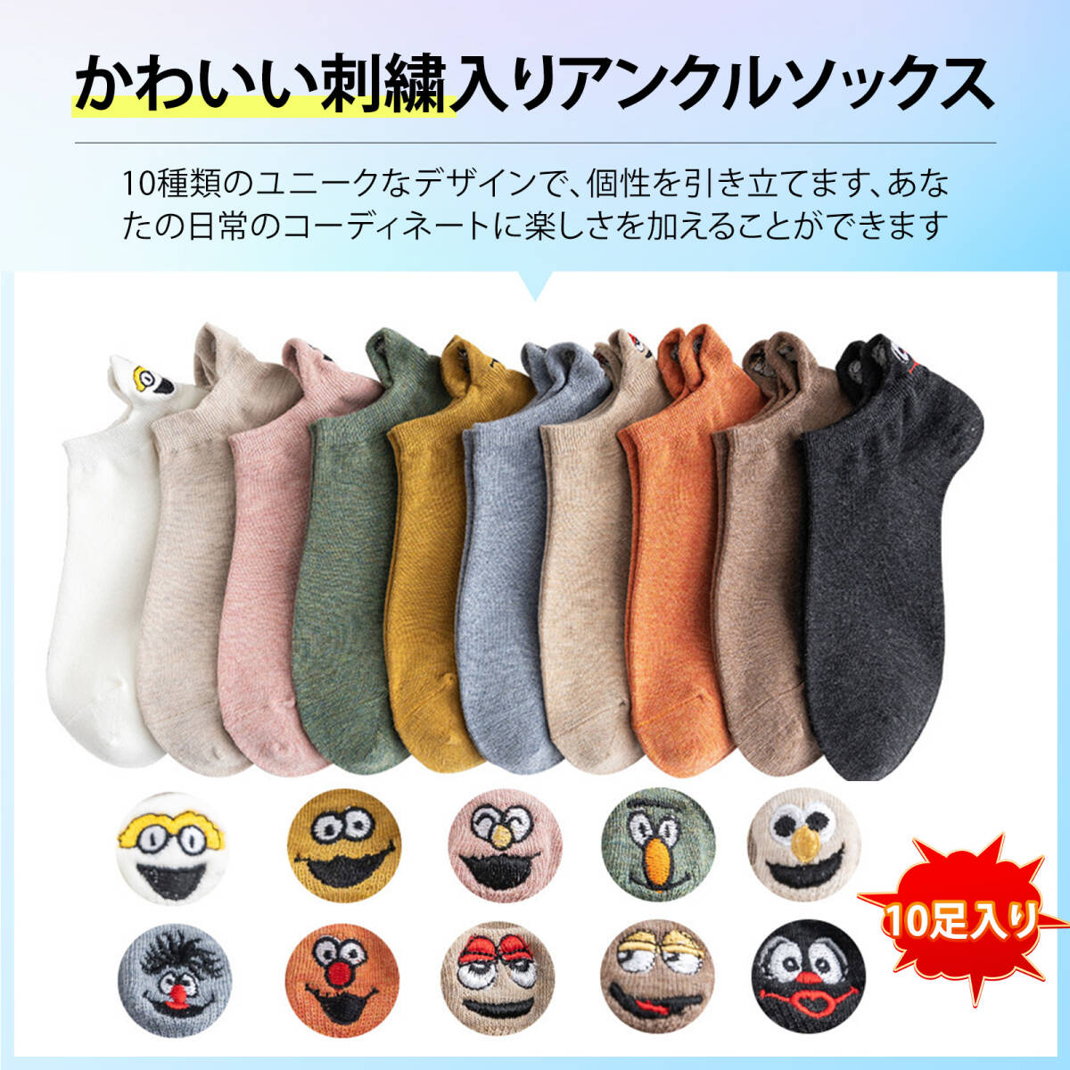 - 【10 足入り】靴下 レディース 可愛い ソックス 靴下 ソックス レディース 靴下 レディース 後跟刺繍 キャラクター 短筒靴下 後跟高;m7537;
