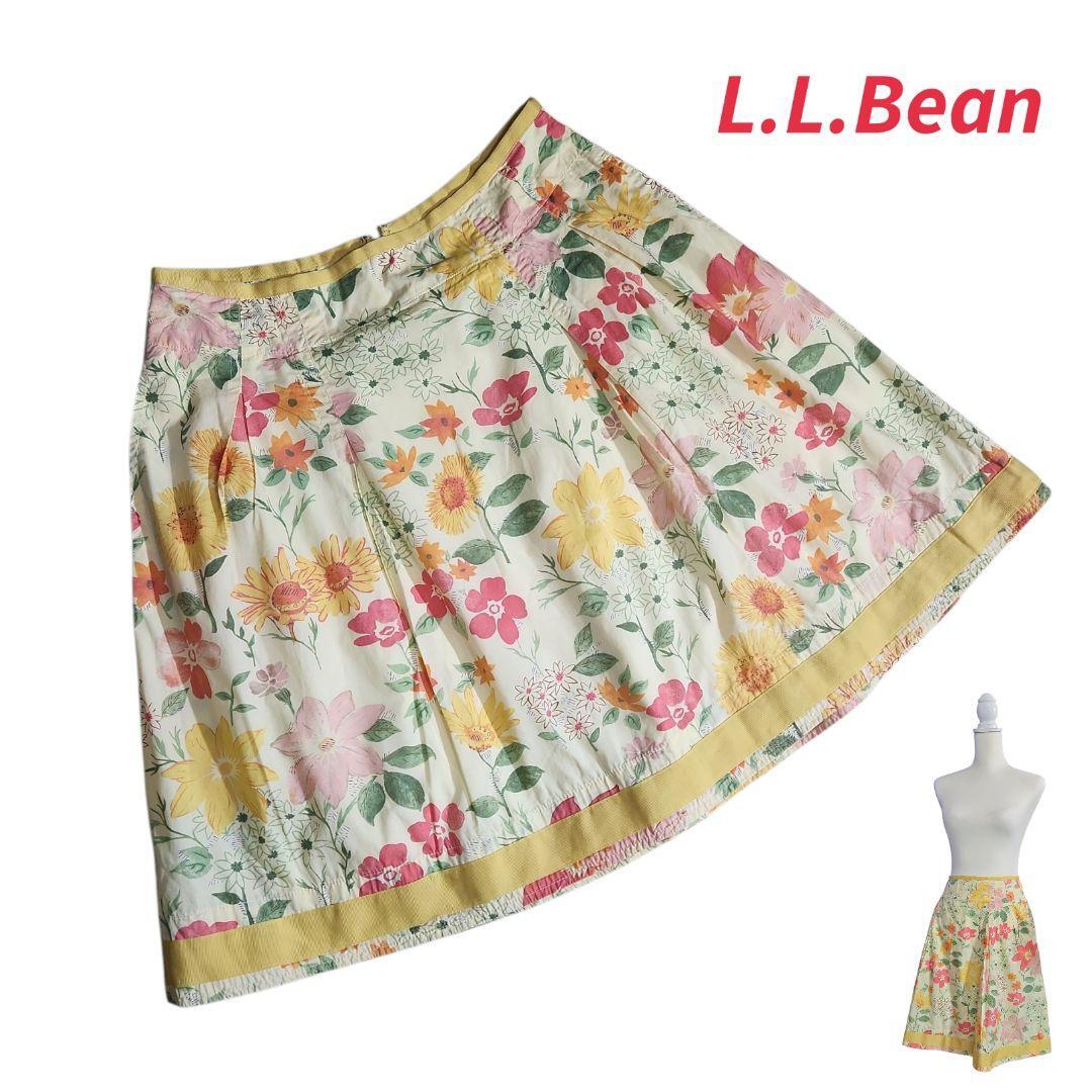 - L.L.Bean 花柄・コットン素材フレアスカート 膝丈 ライトイエロー 総柄 4409