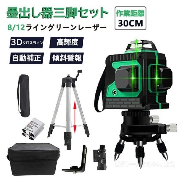 > レーザー墨出し器 レーザーレベル 12ライン 360度 レーザー墨出し機 自動補正機能 グリーンレーザー 小型軽量 30m作業範囲 (A295)