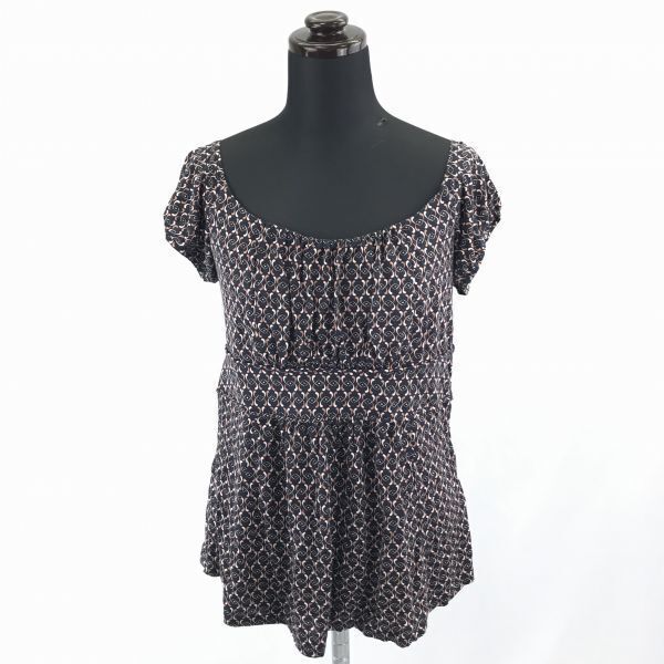 - 送料込★マックス&コー★シルク半袖カットソー【M/紺系】シルク70%/バトーネック/ウエストマークデザイン/総柄/サイドファスナー◆BA610W