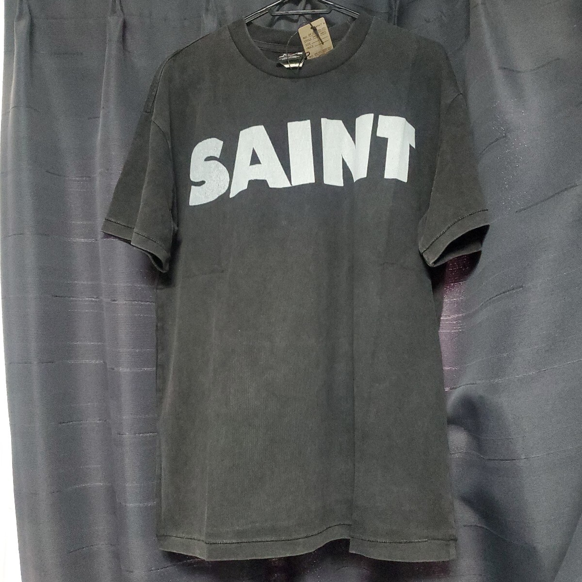 > 1000円スタート シンプルロゴ Tシャツ ブラック Mサイズ 現状品 処分品 saint michael SAINT Mxxxxxx セントマイケル