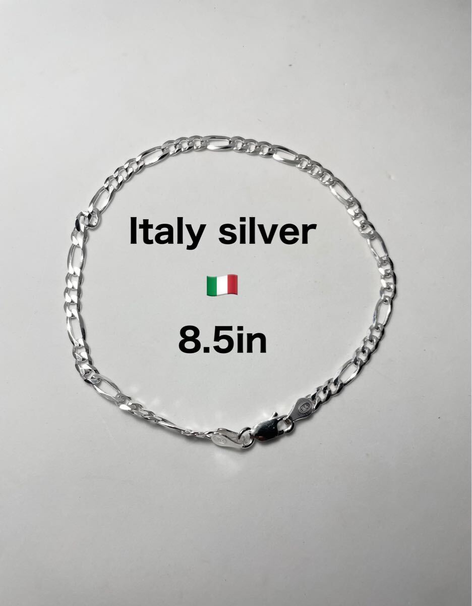 - LMIけzかjに ITALYイタリアスターリングシルバーフィガロチェーンSILVERブレスレットn