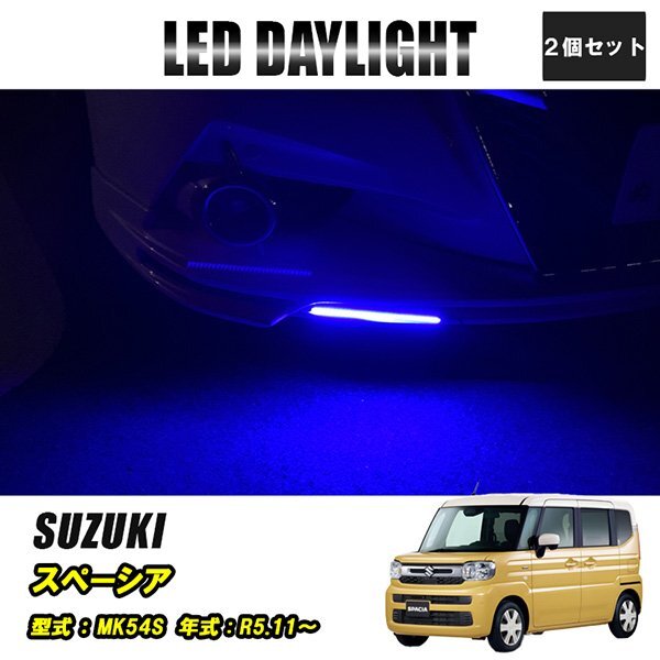 - スペーシアMK54S LED デイライト 極細 埋め込み 改良版 フロントグリル バンパー 防水 30灯 ブルー 2P 汎用 昼間点灯