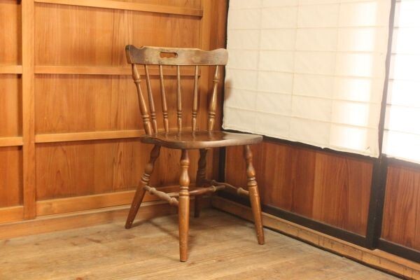 - 【蔵出し】★美品 家具『古い木製のウインザーチェア』★検:(初だし/洋風/アンティーク調/昭和レトロ/椅子/スツール/当時物)70925C