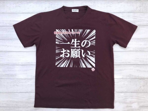 > オモシロT ユニーク ストリート 何度目か忘れるくらいの 一生のお願い 半袖Tシャツ メンズ ポリエステル100% L エンジ
