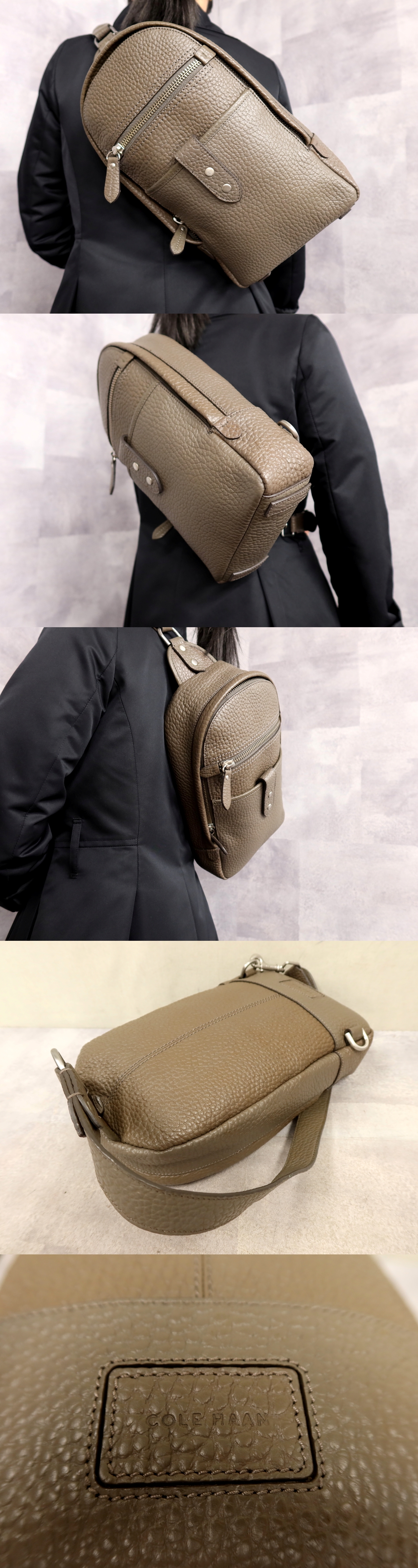 - ●超美品●新品同様●COLE HAAN コールハーン●メンズ●カーフ レザー 本革●ボディ ショルダー バッグ●ローズグレイ●SV金具●Js62029