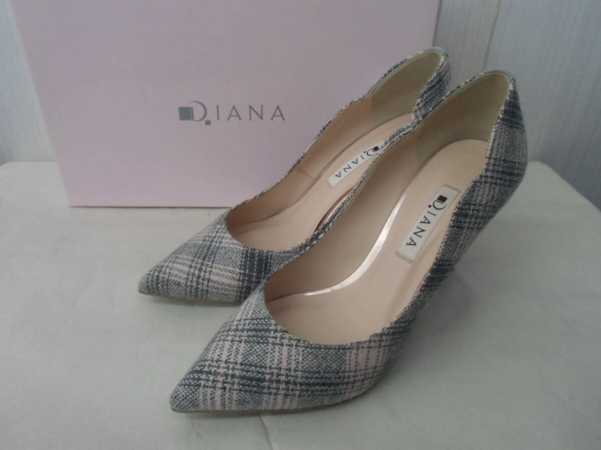 > ダイアナ DIANA パンプス 23cm チェック グレー、ピンク系