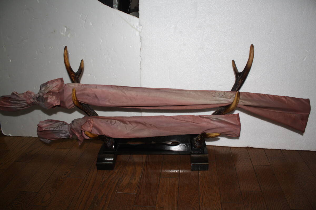 - 模造刀 日本刀 大刀、小刀 セット 刀袋、鹿角刀置き台付き 並品 現状