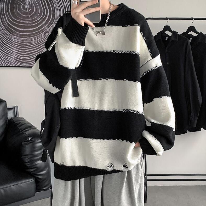 - 新作大人気ゆったり スリム カジュアル ニット セーター クルーネック メンズファッション ブラックXL