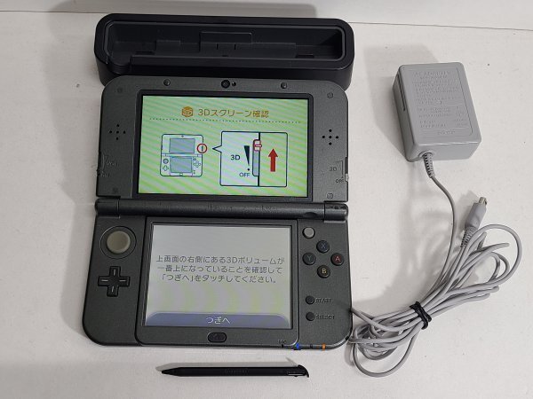 > ☆ new3DSLL ☆ Newニンテンドー3DS LL メタリックブラック 動作品 本体 タッチペン 充電台 アダプター 付属 Nintendo 任天堂 B74