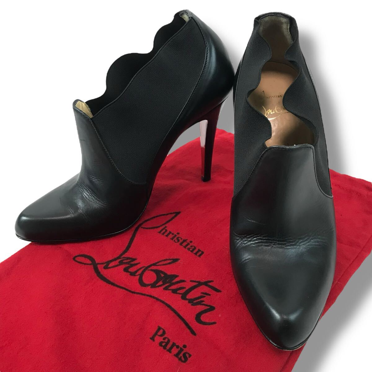 - d291 Christian Louboutin クリスチャンルブタン レザー ブーティ ショートブーツ 黒 本革 38.5 イタリア製 サイドゴア ピンヒール 正規品