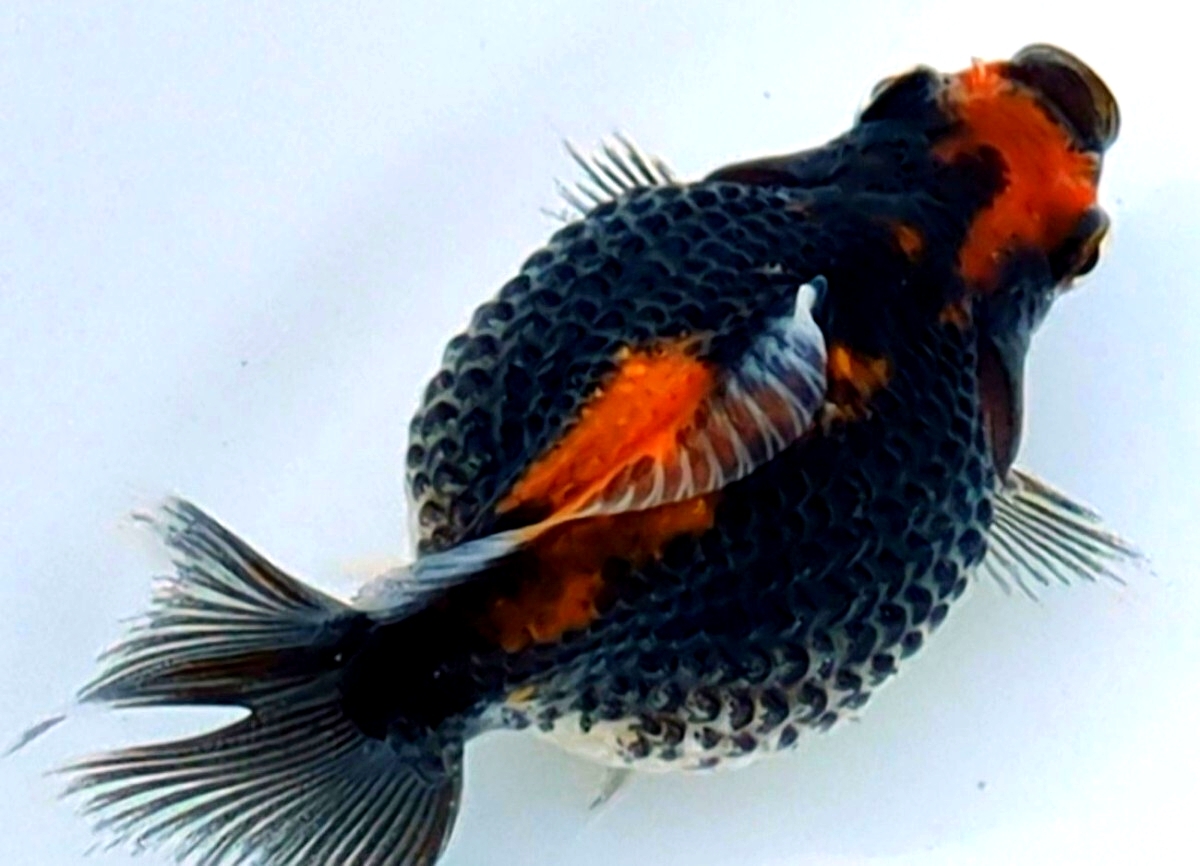 - 黑丹頂柄◆本年産墨ブラック透明鱗パール7センチ前後◆現物1尾⑦