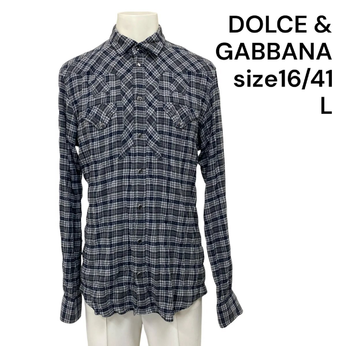 - ドルチェアンドガッバーナ DOLCE&GABBANA SICILIA ネルシャツ 長袖 綿 16/41、L メンズ S5U209