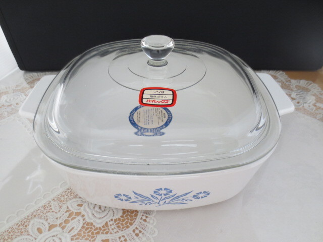 - コーニング・パイレックス・両手鍋・ブルー コーンフラワー・超耐熱ガラス食器・直火・オーブン・電子レンOK!!