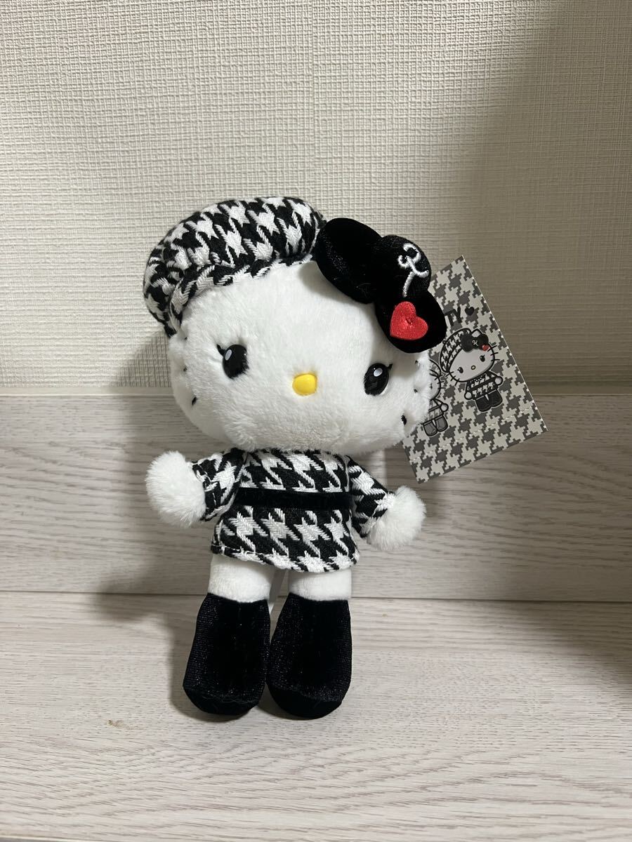 - ハローキティ マスコットホルダー モノクロガーリーふたごコーデ 千鳥格子 ぬい