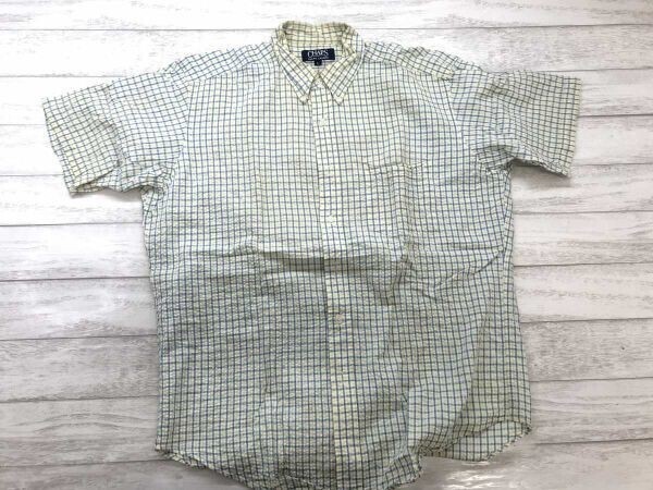 > チャップス ラルフローレン CHAPS RALPH LAUREN レトロ アメトラ シアサッカー チェック ボタンダウン 半袖シャツ メンズ L 黄色