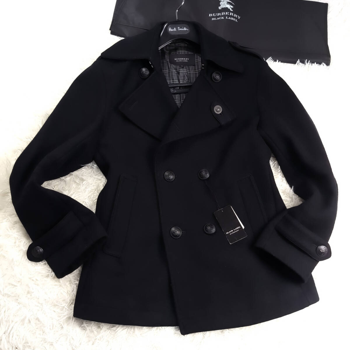 - 極美品銀釦BURBERRY BLACK LABELナポレオンコートL~Mマリンピーコート銀メタルボタンP黒ノバチェック柄ブラレ バーバリーブラックレーベル