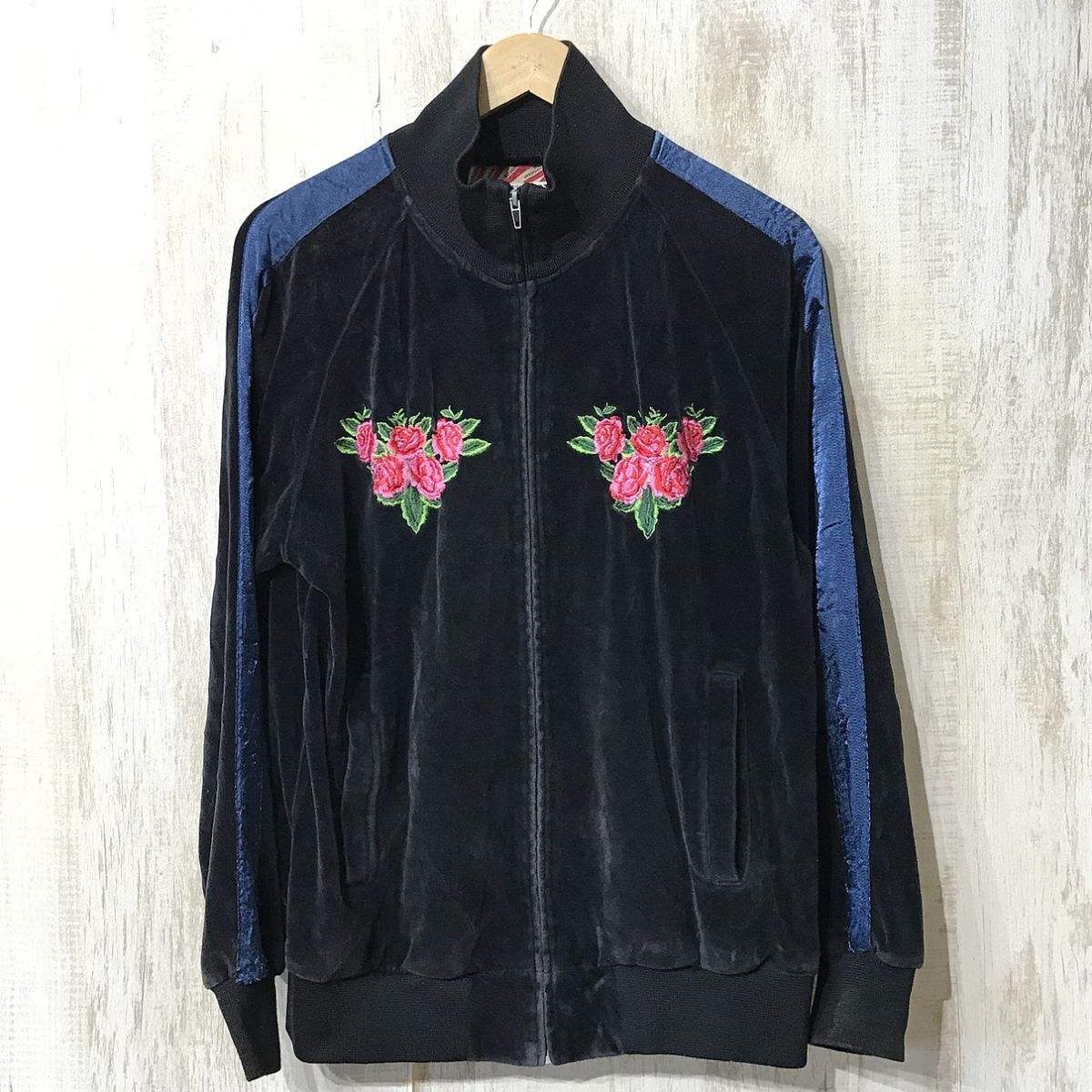 - 203☆【薔薇刺繍 ベロアジャケット】HOUSTON ヒューストン 別珍 L 黒 紺