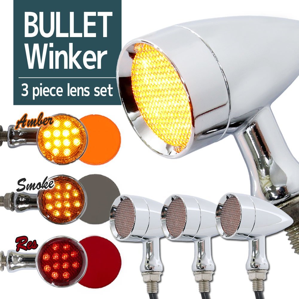 > スポーツスター ダイナ LED ブレット ウインカー 砲弾型 アメリカン メッキ 4個 セット アンバー スモーク レッド レンズ交換 汎用 バイク