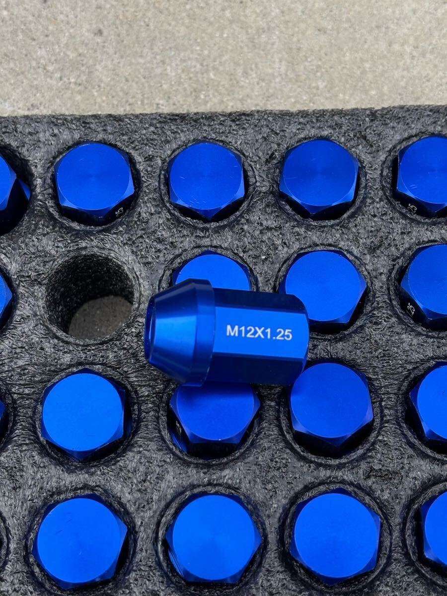 - 【未使用】アルミホイールナット M12 p1.25 ロックナット付き ブルー 20個セット レーシングホイールナット 軽量