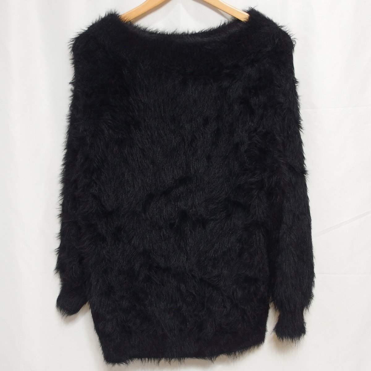 - JEANASIS◆ジーナシス ボートネック 長袖 シャギーニット(ブラック)サイズF◆USED L