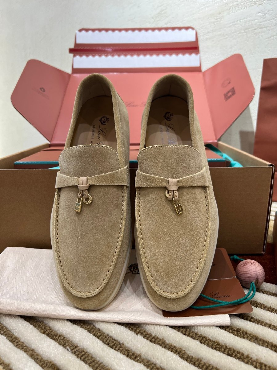 > 24.5cm★送料無料★ロロピアーナ Loro Piana メンズ スエード ローファー, グレー, 牛革ソール, 金属装飾付き