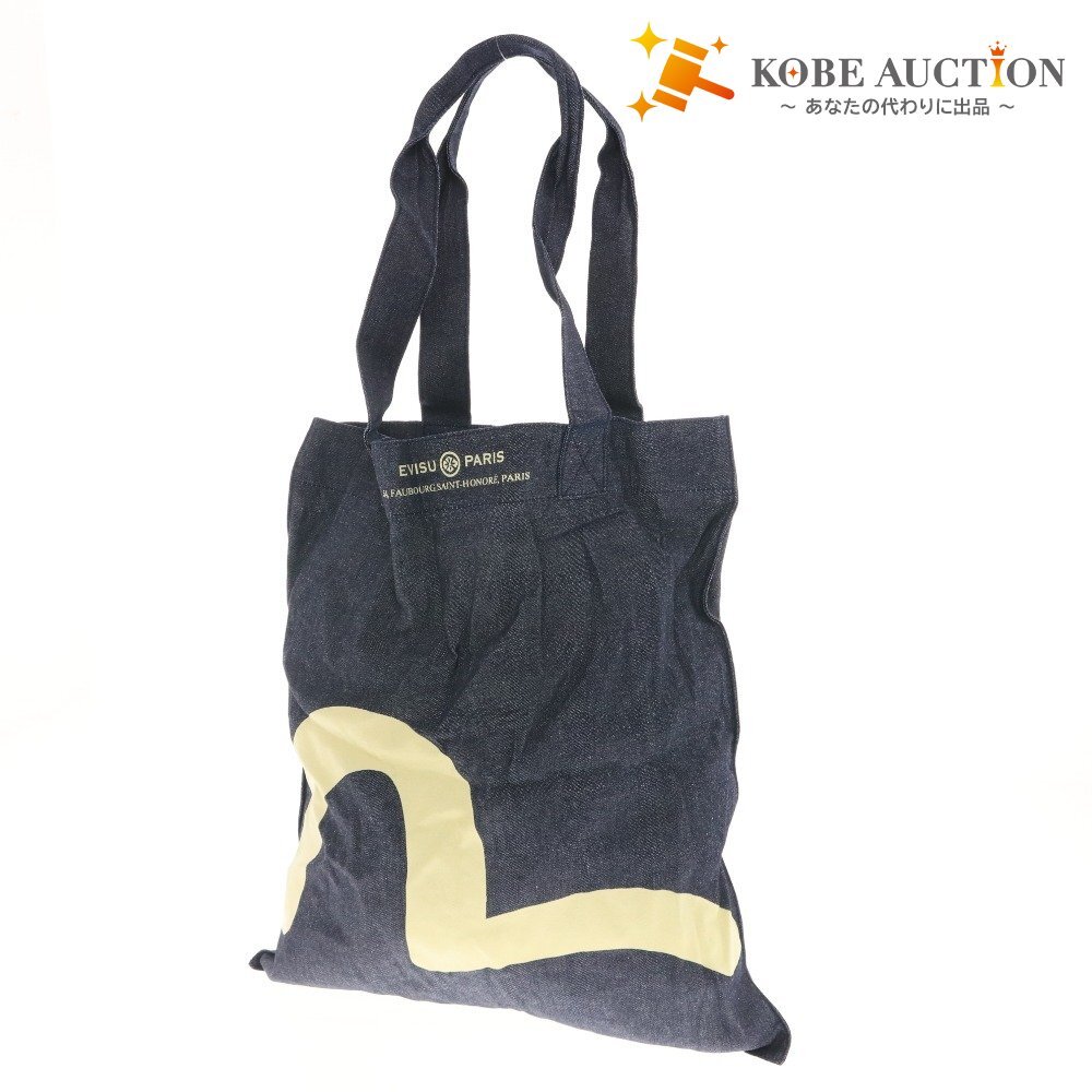 - ■ EVISU エヴィス トートバッグ ハンドバッグ 鞄 ロゴ メンズ レディース ネイビー アイボリー 未使用