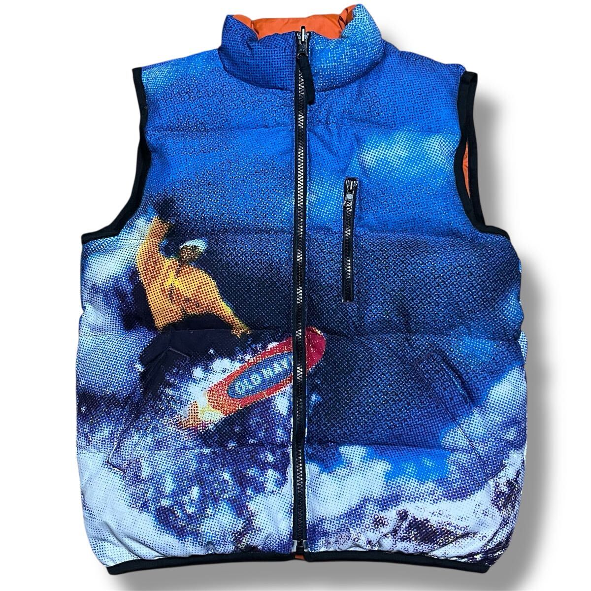 - OLD NAVY 00s リバーシブル 総柄 無地 ダウンベスト 名作 値引可 オールドネイビー Y2K オールドスケート オールドサーフ 当時物