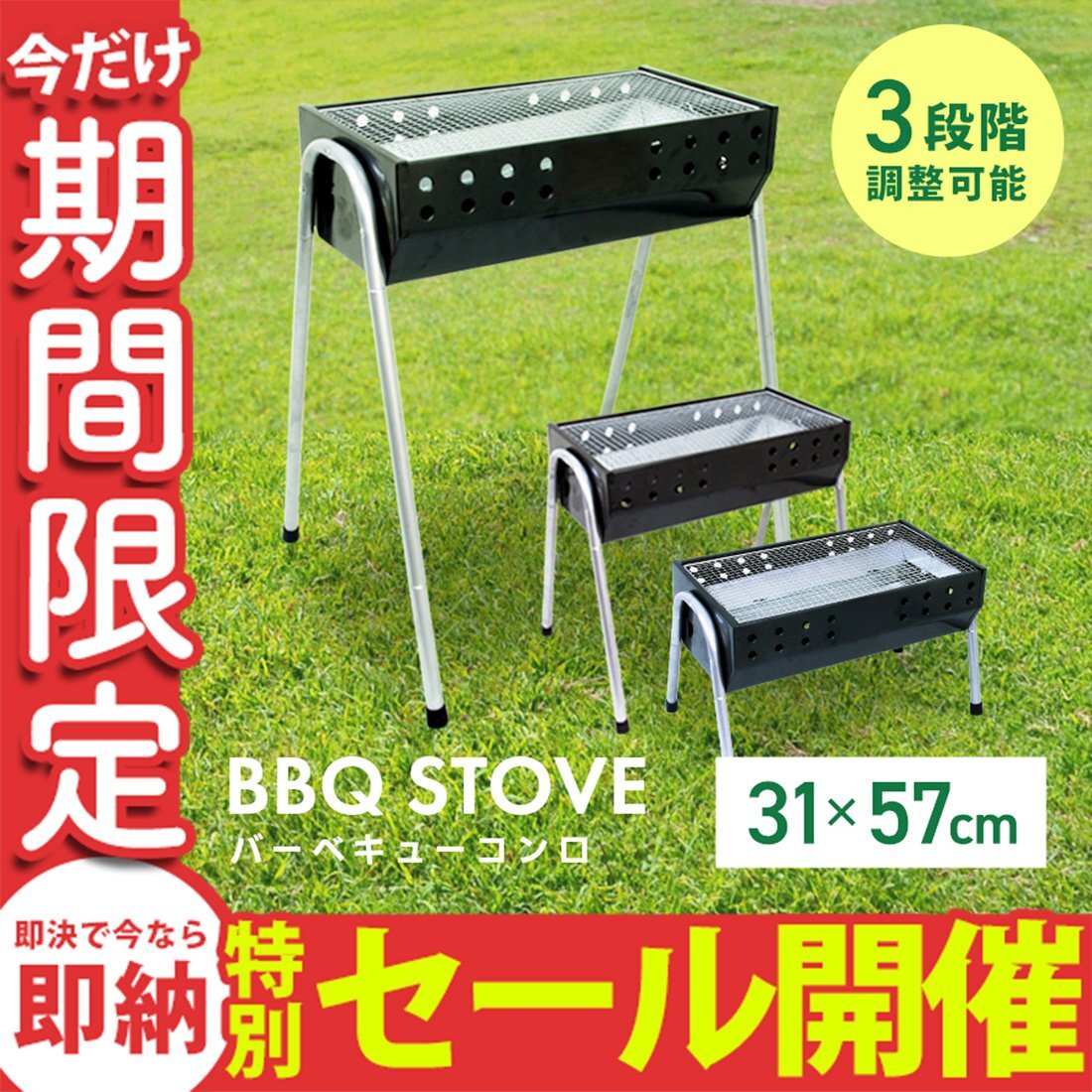 > 【数量限定セール】バーベキューコンロ BBQ 折りたたみ コンパクト グリル 3段階調節機能付き 54cm 2~4人用 キャンプ バーベキューコンロ