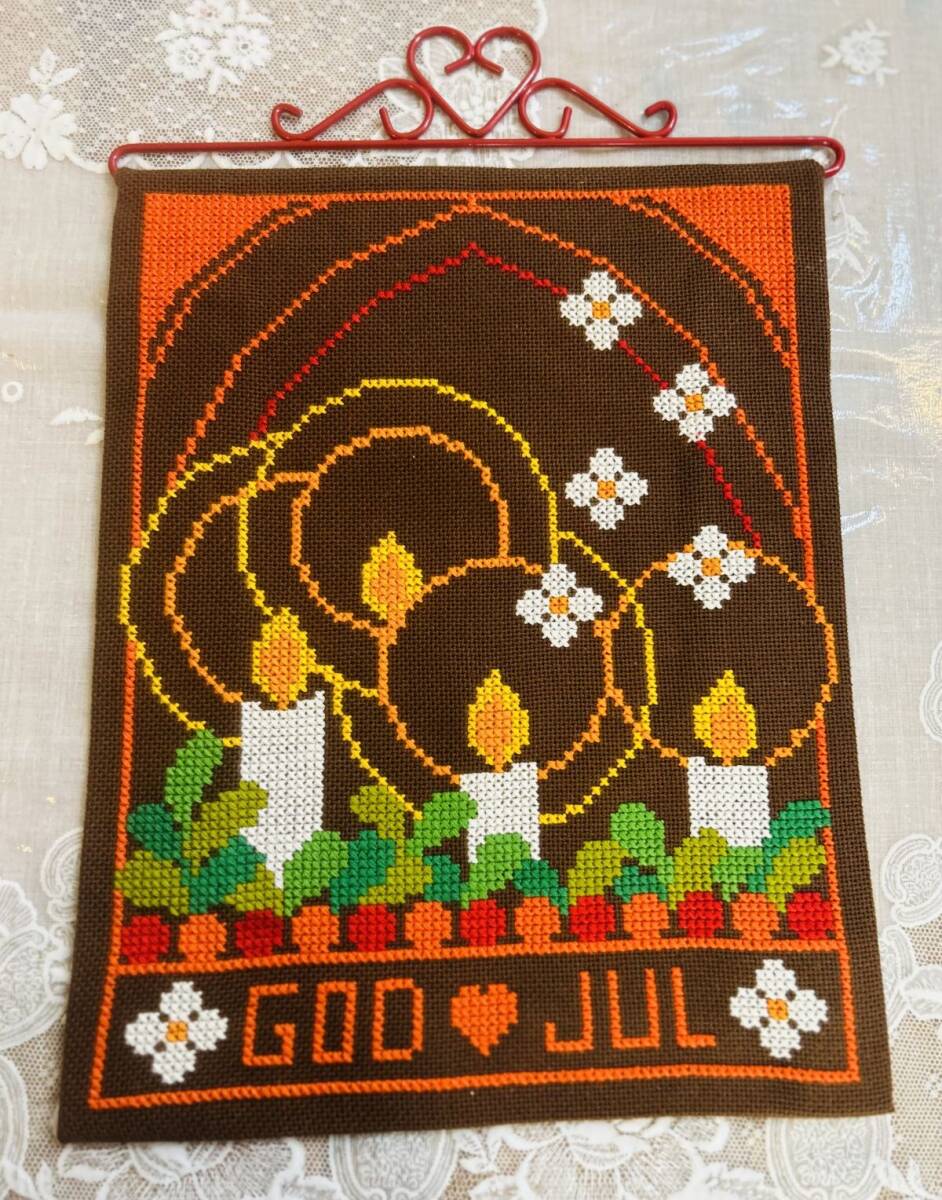 北欧クリスマス☆コットン ブラウン地 キャンドル タペストリー