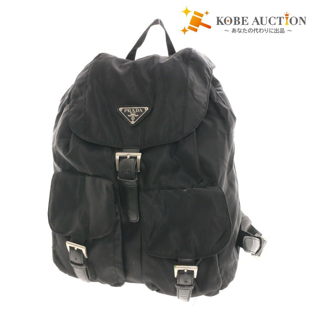 - ■ プラダ ポコノ バックパック リュック 鞄 フラップ ベルト金具 ポケット ファスナー レディース メンズ ブラック 付属品付き