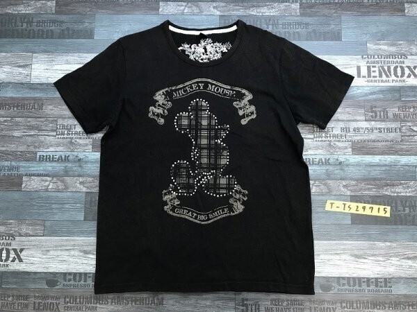 > DISNEY ディズニー レディース ミッキーシルエットプリント&ライトストーン 半袖Tシャツ L 黒
