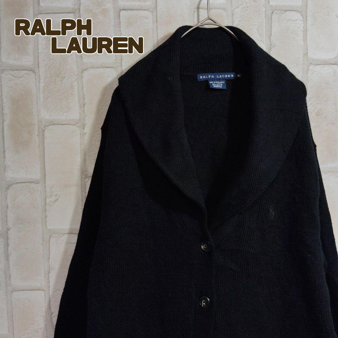 - ラルフローレン カーディガン ニット 黒 ショールカラー 刺繍