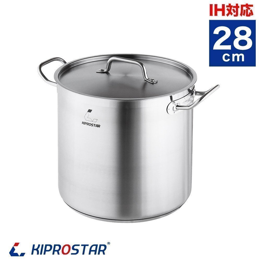 - 【新品】KIPROSTAR IH対応 業務用 ステンレス寸胴鍋(蓋付) 28cm 寸胴鍋 両手鍋 ステンレス鍋