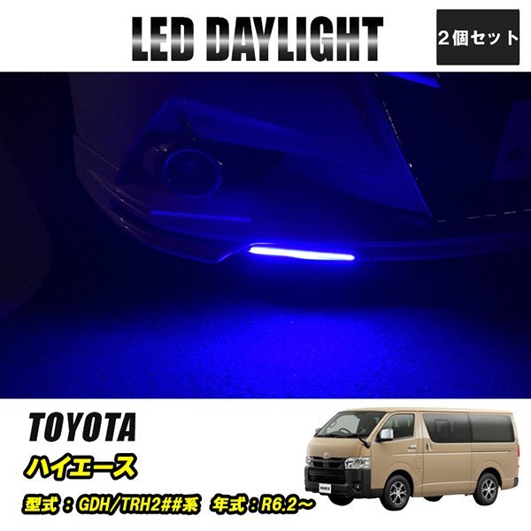 - ハイエースGDH TRH2##系 LED デイライト 極細 埋め込み 改良版 フロントグリル バンパー 防水 30灯 ブルー 2P 汎用 昼間点灯