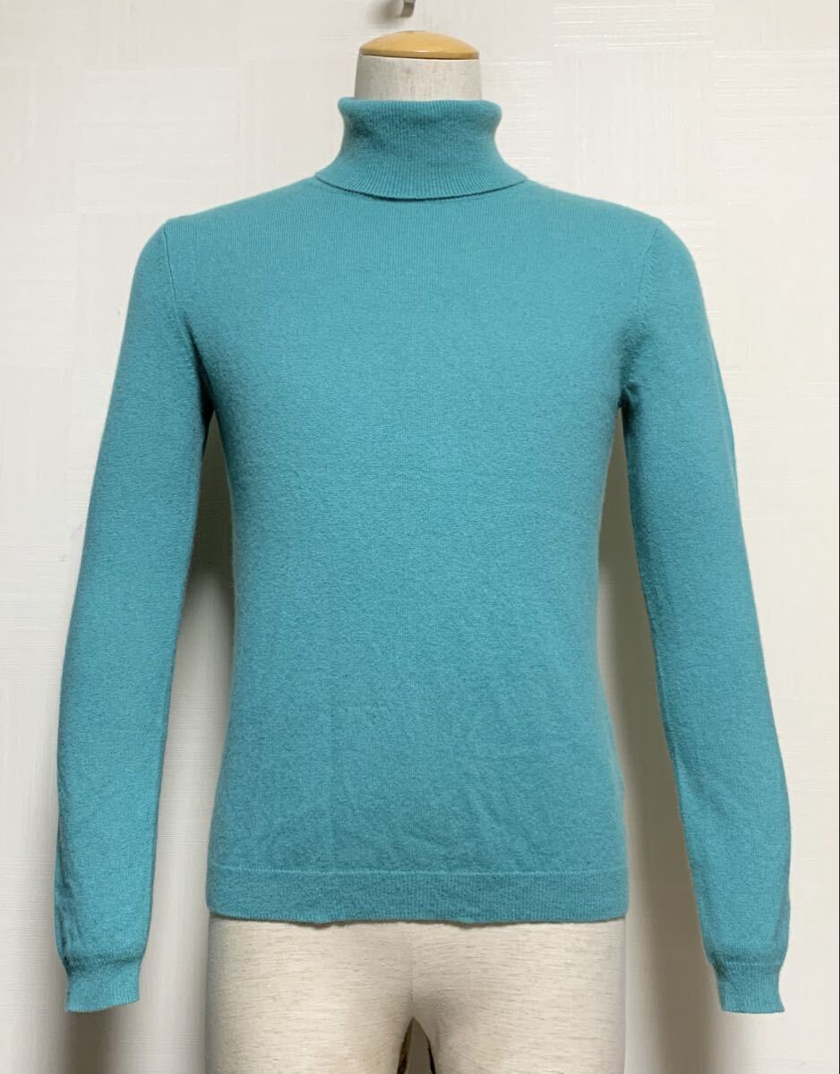 > 美品:UNIQLO(ユニクロ).100% カシミヤ タートルネック ニット L(レディース/緑/ミント/セーター/ハイネック/肩38幅46丈60/肌触り 抜群です)